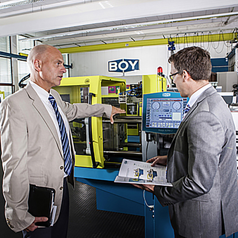 At BOY, customer orientation already begins with the construction phase. All injection molding machines are characterized by maximum ease of maintenance. Special emphasis is put on good documentation. To ensure that the correct parts are supplied. Longer down times due to repairs or maintenance work are therefore practically eliminated.